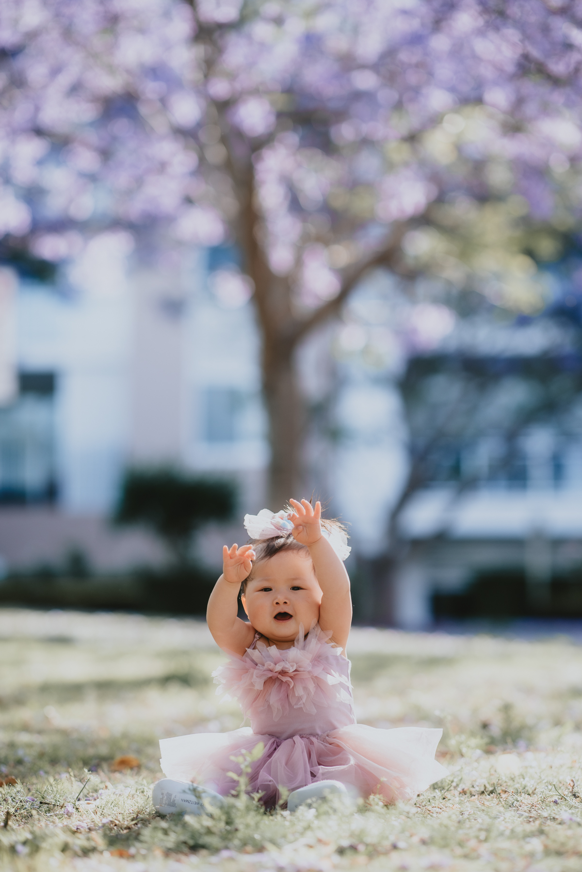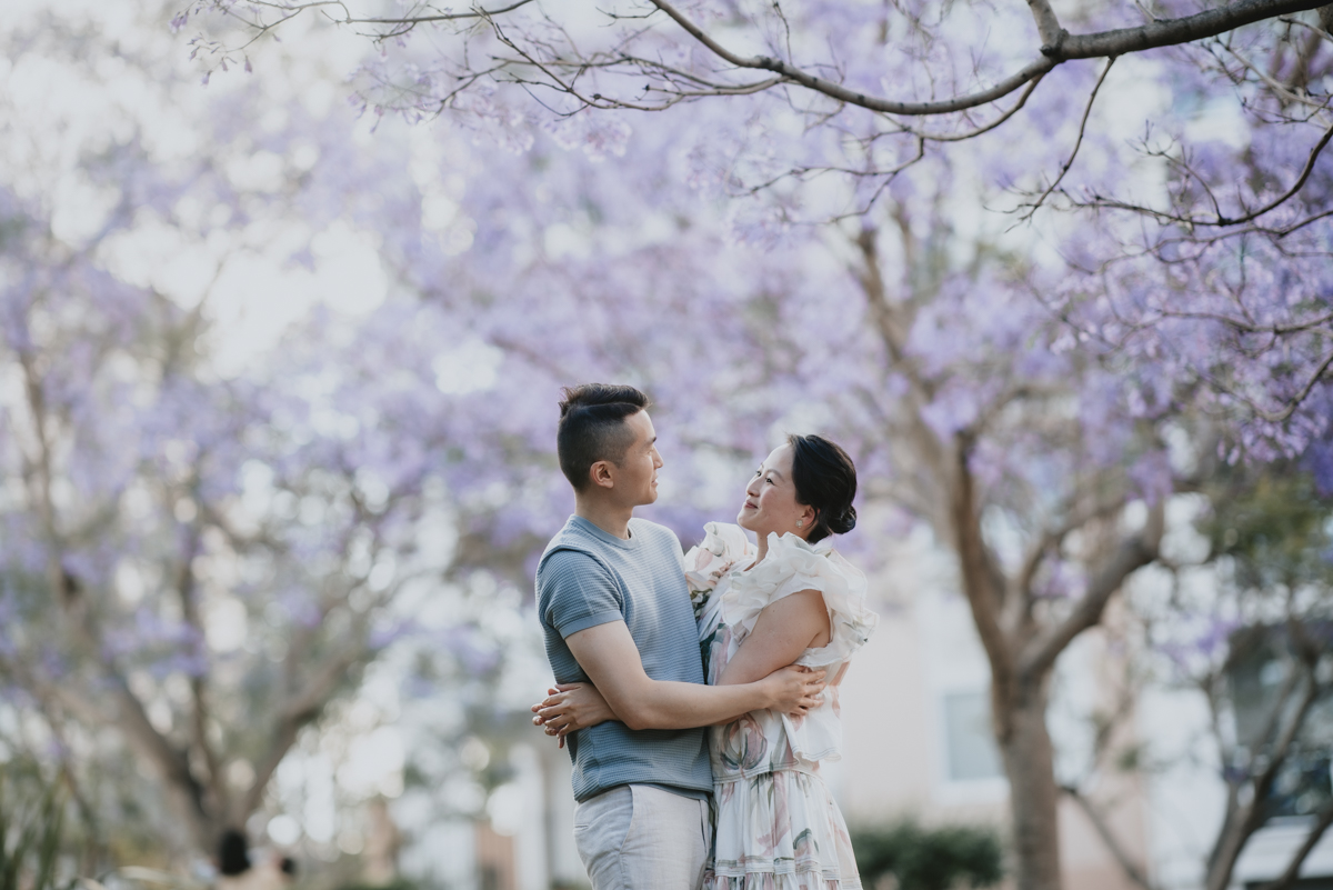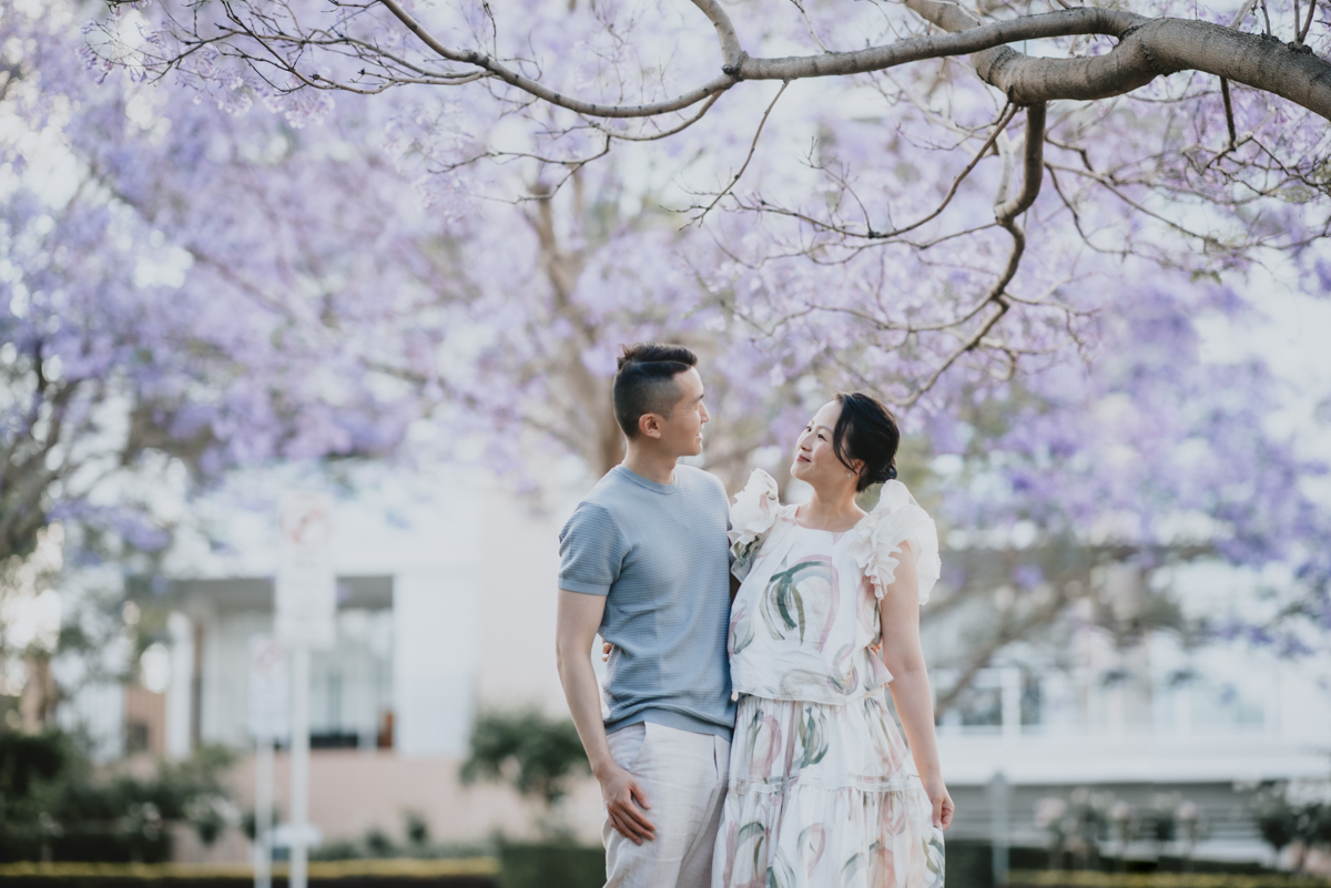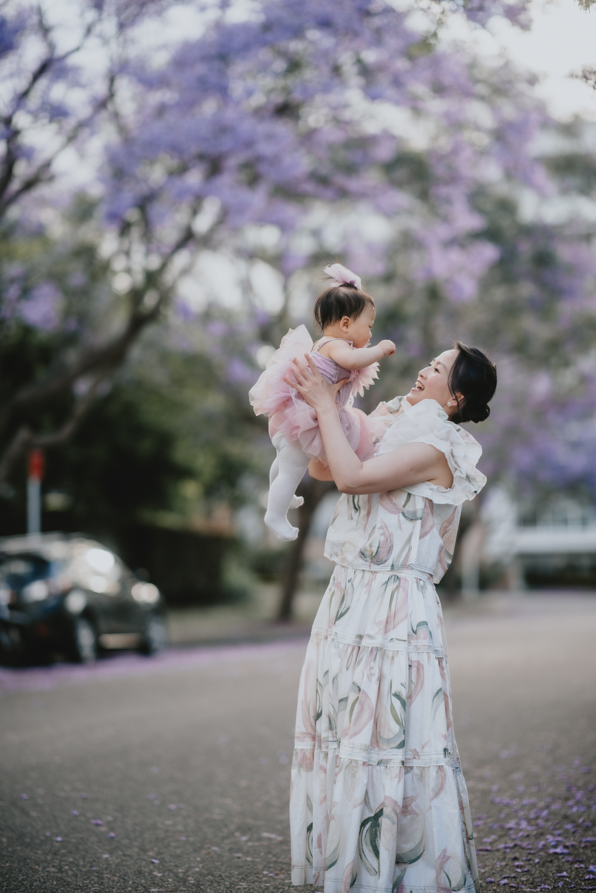 Jacaranda season in Sydney is so spectacular! For a month the skies over Sydney’s suburban street turn into pastel purple. You do not want to miss it! What better backdrop is there for a family portrait session than these magical Jacaranda blossom skies?