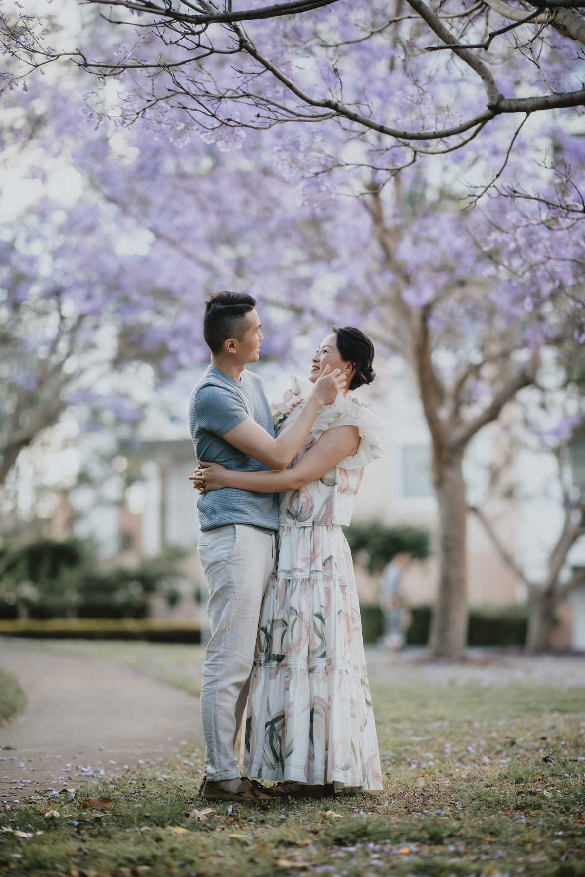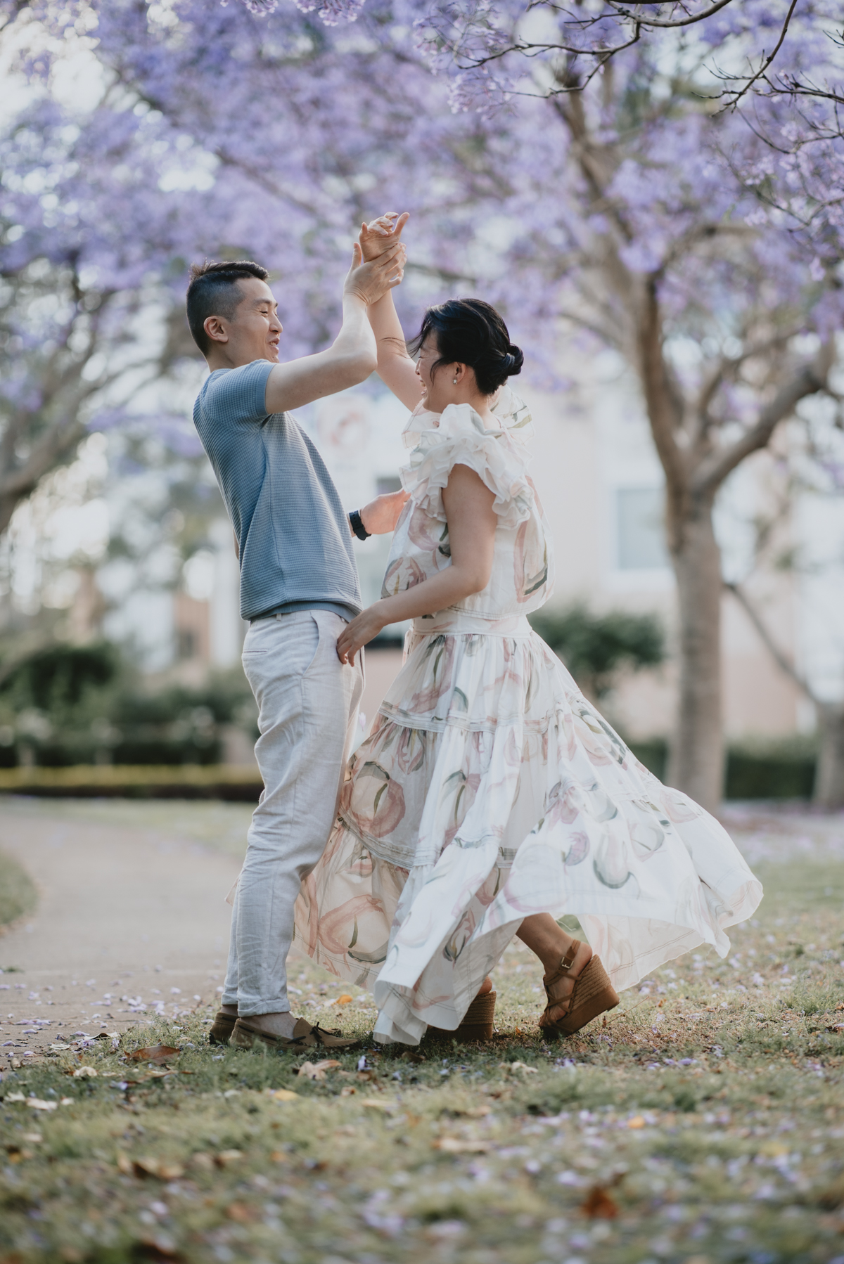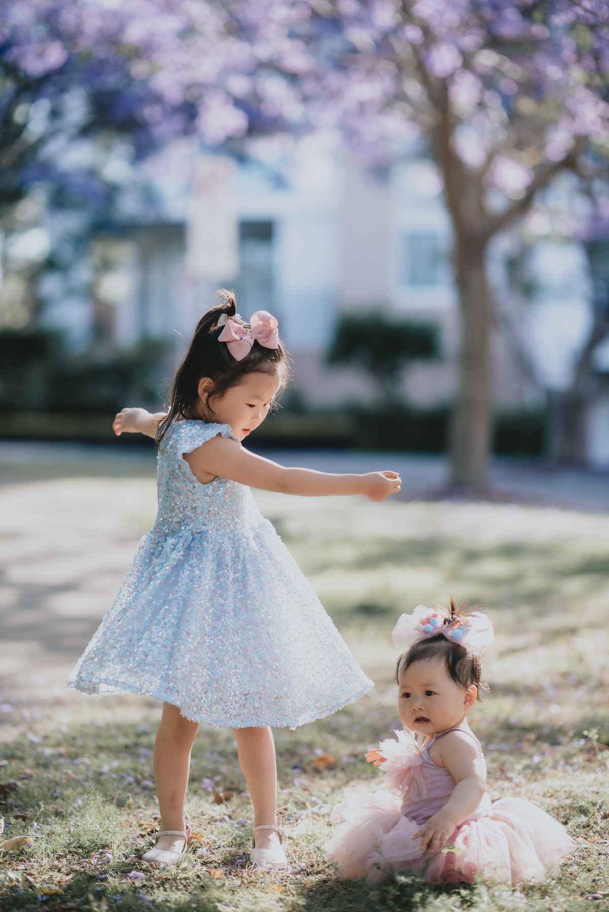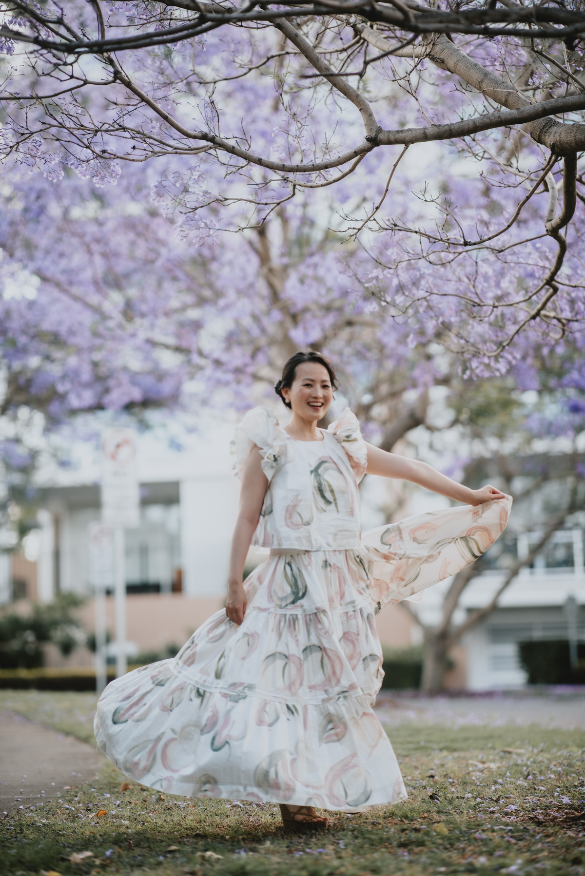 Jacaranda season in Sydney is so spectacular! For a month the skies over Sydney’s suburban street turn into pastel purple. You do not want to miss it! What better backdrop is there for a family portrait session than these magical Jacaranda blossom skies?
